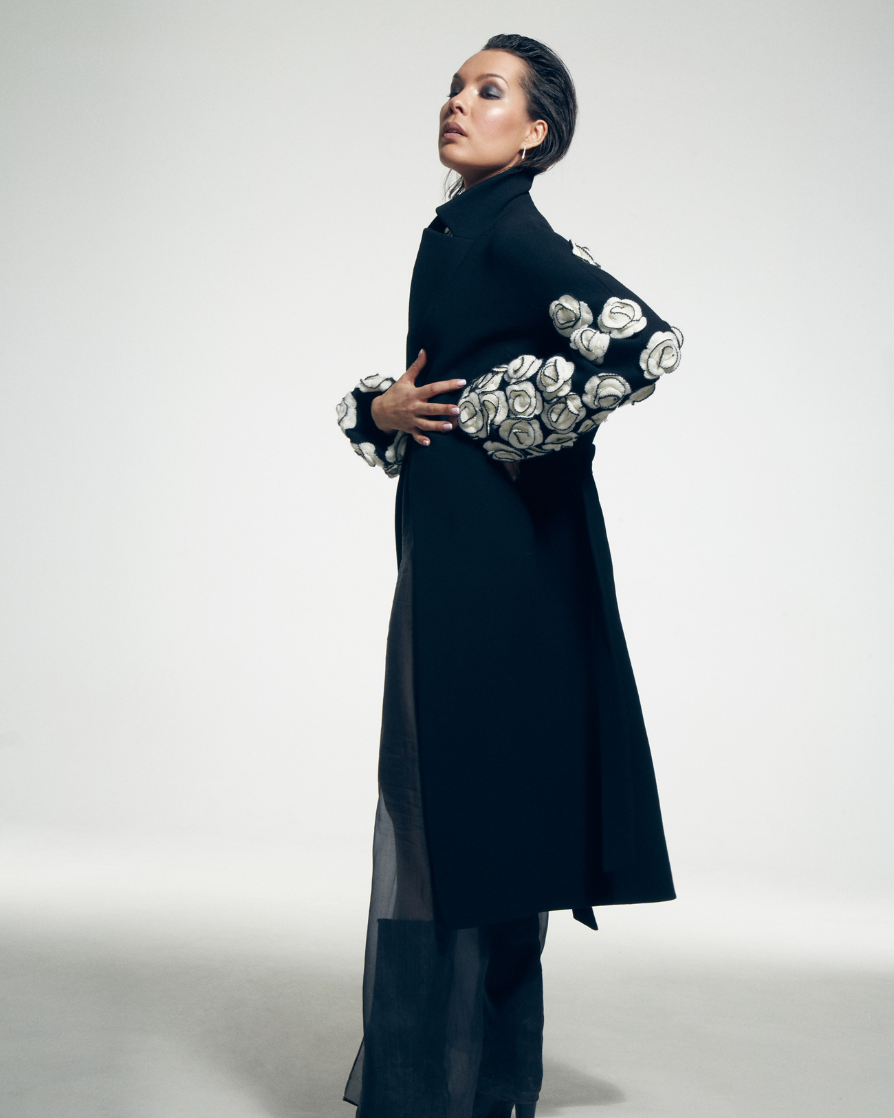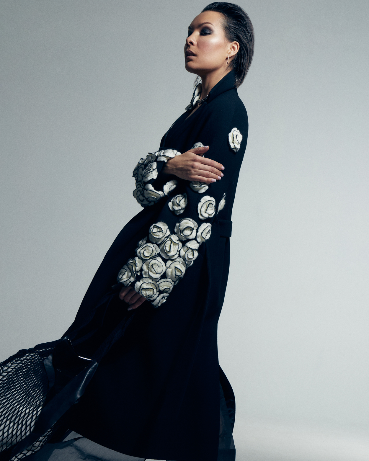 Авторское пальто из итальянской шерсти и шелка. Декорировано вязаными розами. Модель доступна к заказу в подобном прочтении.
