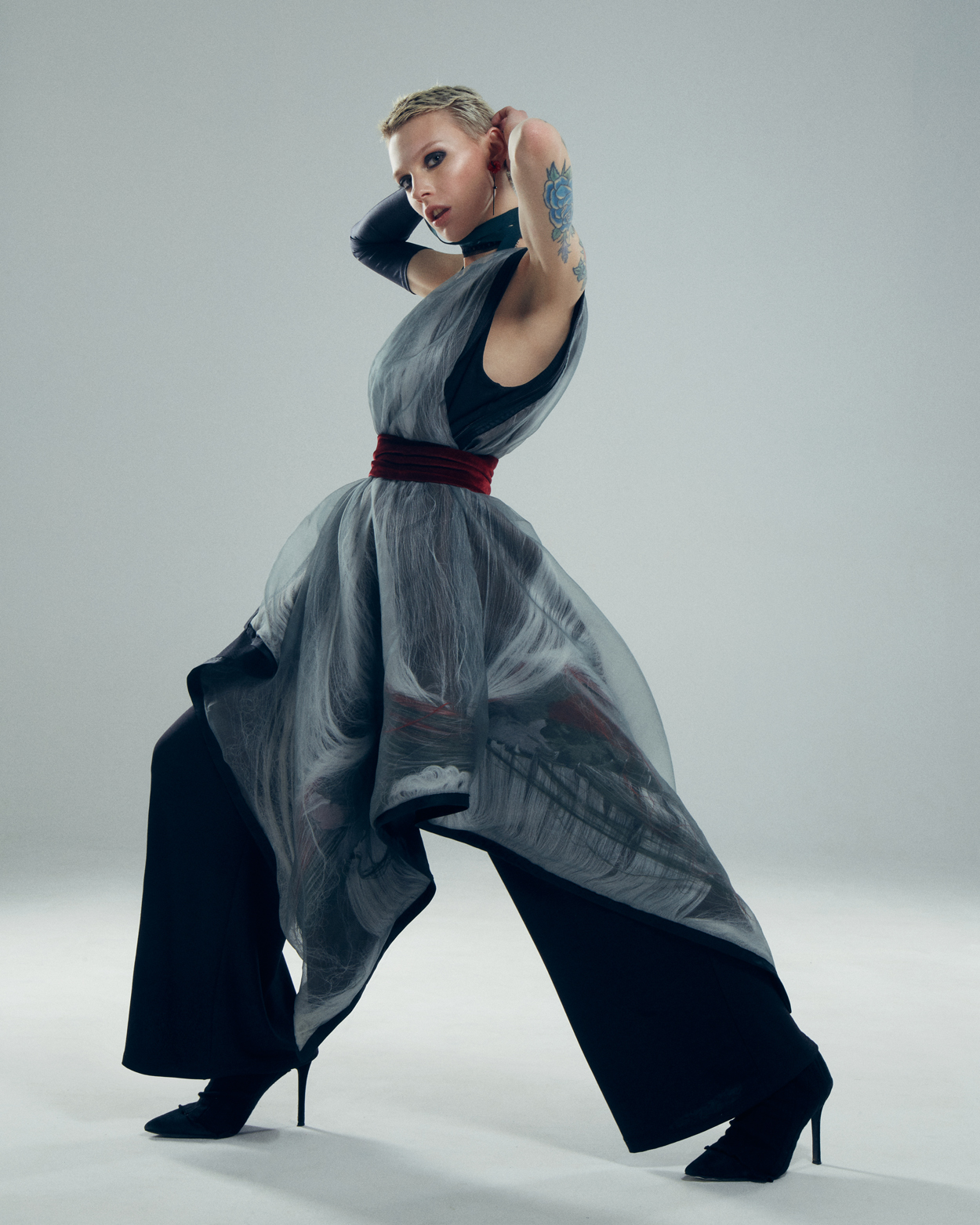 Модель-трансформер из шелковой органзы и жаккарда. One size.
